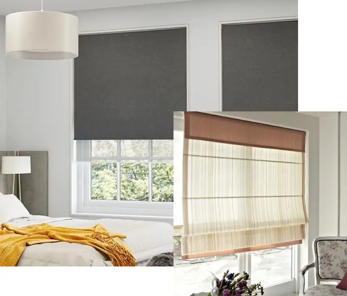 Elevate your space with the timeless elegance of Roman blinds. Their soft fabric gathers into luxurious folds when raised, offering a sophisticated and warm look for any room.